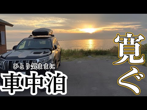 北海道の無料野営場で夕日を眺める車中泊の旅【プラド車中泊】